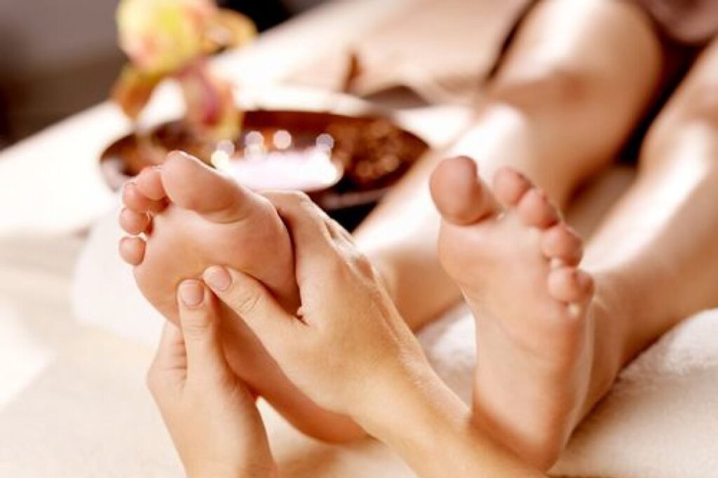 Après un bain aux pétales de rose et aux senteurs de gingembre (et massage de la nuque),ce massage stimule la circulation sanguine et le drainage lymphatique et aide à éliminer les toxines.Il est très utiles pour soulager de nombreuses douleurs car les pieds permettent d’accéder à de nombreux organes.